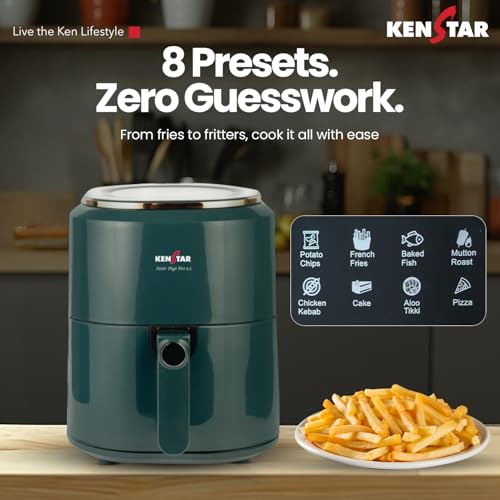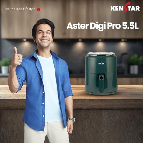 8 reviews for Kenstar ASTER PRO DIGI 5.5 Air Fryer | 360° High Speed Air Circulation Technology with Non-Stick 5.5 L Basket | 1400 W | Green