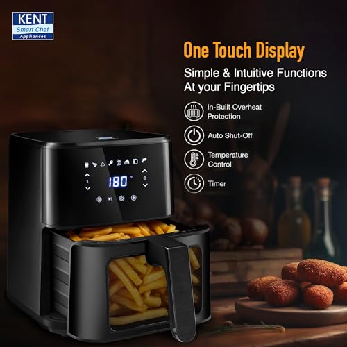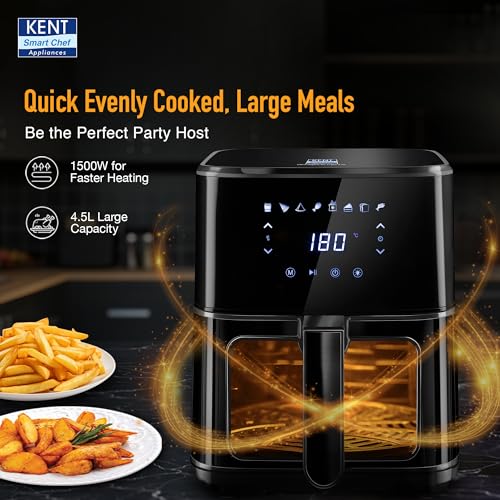 KENT Ultra Digital Air Fryer 4.5L |1500W| Bake, Grill & Roast | Up to 80% Less Oil Usage |8 Preset Menu|Rapid Heat Circulation |Digital Display &…,