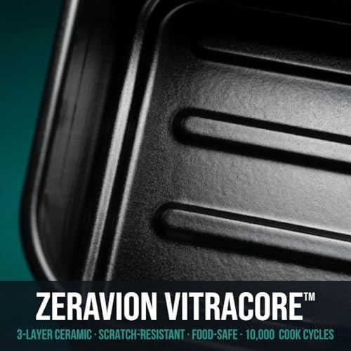- Zeravion Vitracore Ceramic Coating: A proprietary 3-layer ceramic system — completely free of PTFE, PFOA, and synthetic polymers. The vitrified core bonds to the basket at a molecular level. It doesn’t peel, doesn’t flake, doesn’t leach. What touches your food is only the safest ceramic surface engineered for cooking.