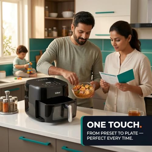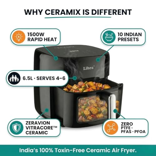 Libra 6.5 Litre Ceramix Air Fryer for Home | 100% Toxin-Free Air Fryer | Zeravion Vitracore™ ceramic technology | 10-in-1 Function: Air Fry, Toast,…,