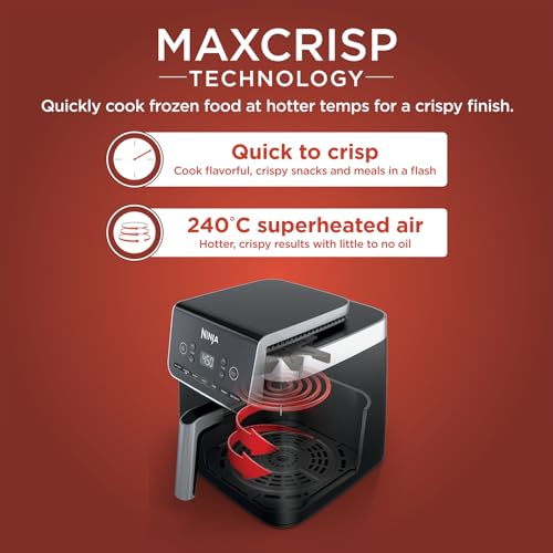 - MAX CRISP TECHNOLOGY: 240°C superheated air delivers powerful 360° circulation for hotter, crispier results with little to no oil.