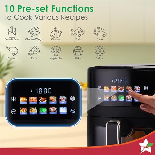 - EFFORTLESS COOKING: The intuitive digital panel with 10 pre-set functions allows you to easily adjust time, temperature, and cooking modes such as frying, baking, roasting and grilling; ensuring perfect results every time.