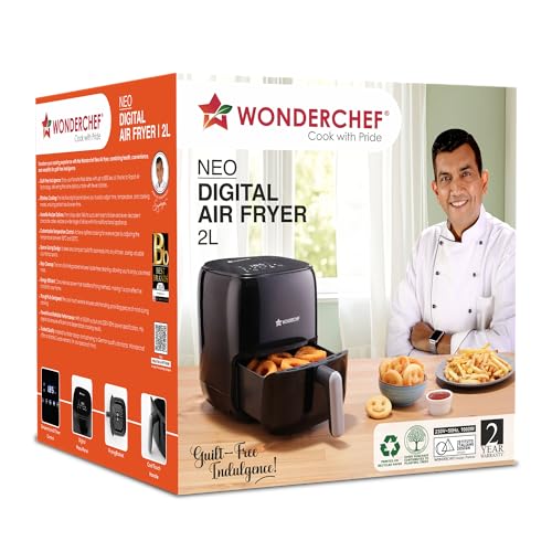 Wonderchef Neo Digital Air Fryer | 1000W, 2 Litres | Rapid Air Technology | Non-stick Basket | Auto Shut-off | Touch Screen | Fry, Bake, Grill,…,