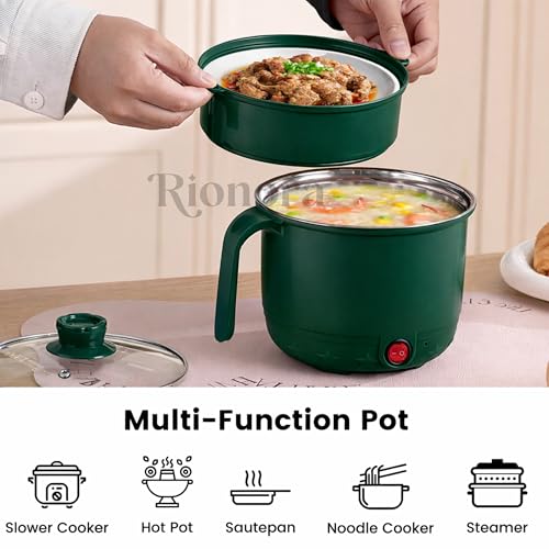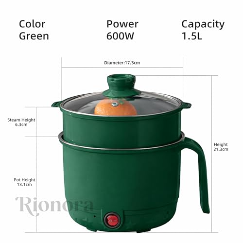 1.5L Electric Hot Pot with Steamer, Stainless Steel Mini Multipurpose Cooker, Portable Rice & Baby Food Maker for Travel, Hostel Kitchen, Boil,…,