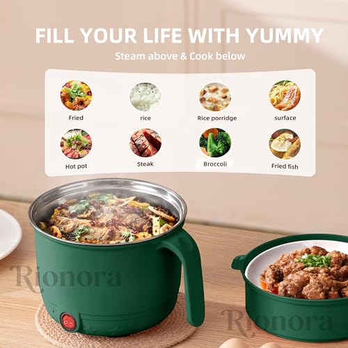 1.5L Electric Hot Pot with Steamer, Stainless Steel Mini Multipurpose Cooker, Portable Rice & Baby Food Maker for Travel, Hostel Kitchen, Boil,…