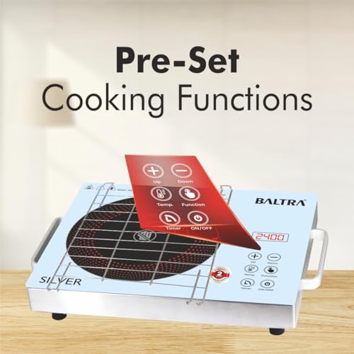 BALTRA Infrared Induction Cooktop Radiant Silver 2400Watt Touch Control Panel | Over Heat Protection, Multi Power Level Function, Digital Display,…
