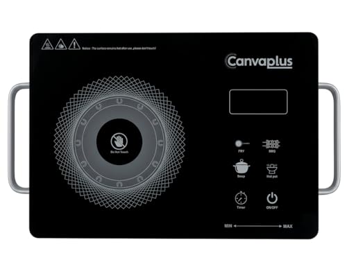 Canvaplus Infra 2600W Infrared Cooktop, Portable Single Burner with Digital Touch Controls, 6 Cooking Modes, Fast Heating, Black