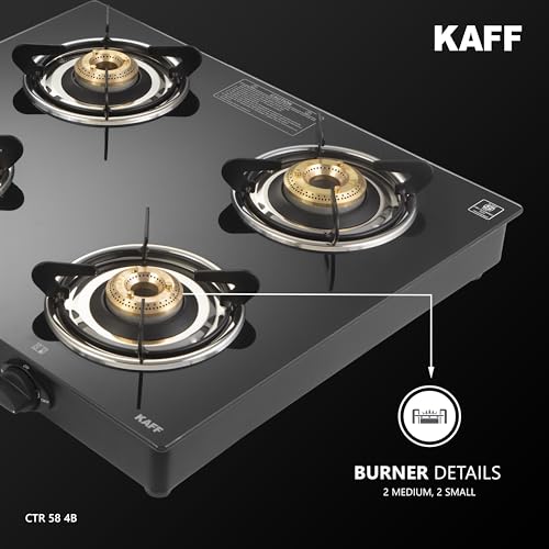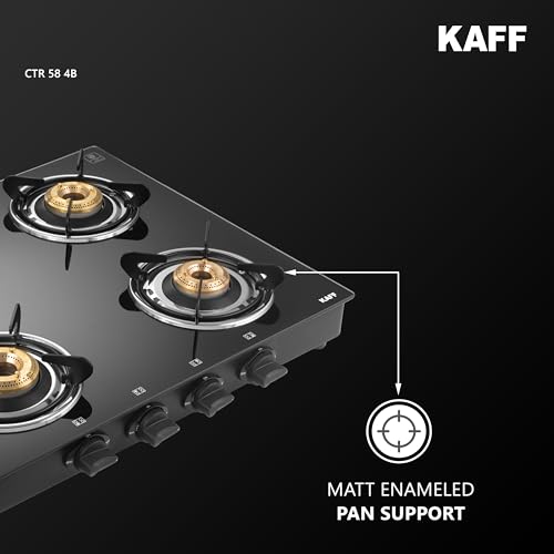 KAFF Cooktop | 4 Burners with Slim Line Design 58 CM | High Efficiency Brass Burners, Black Tempered Glass | Matt Enamelled Pan Support | Black |…,