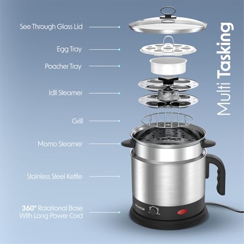 6 reviews for Cellecor Multi-Cook Kettle CMK13 Magic Chef With Steamer, Egg Tray, Idli Stand, Poacher Tray, Steel Tray, Multi Cooker Electric Kettle (1.3 L, White)