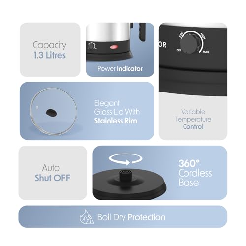 - Boil Dry Function: Safety meets convenience with the boil-dry protection feature. This means the Cellecor Multi-Cook Kettle automatically shuts off if there’s no water inside, protecting both the kettle’s heating system and your safety.