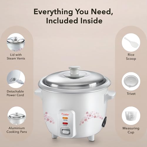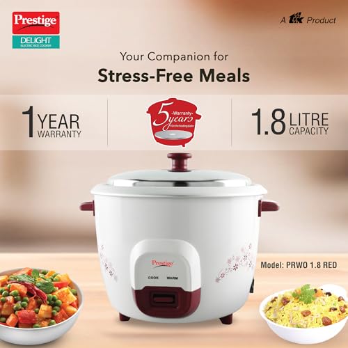 - Capacity: 1.8 liters;Includes: 1 unit of PRWO 1.8 Litre Red Colour Rice cooker.