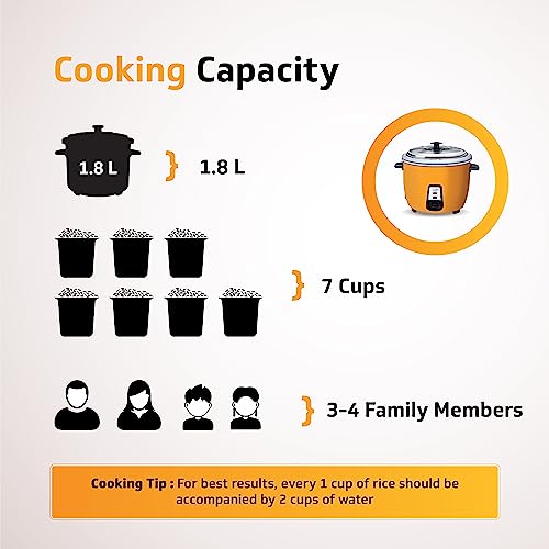 V-Guard VRCD 1.8 Litre Electric Rice Cooker, 5 Year Heating Plate & 2 Year Product Warranty, Automatic Cooking with Warm & Cook Functions, Pale Orange,
