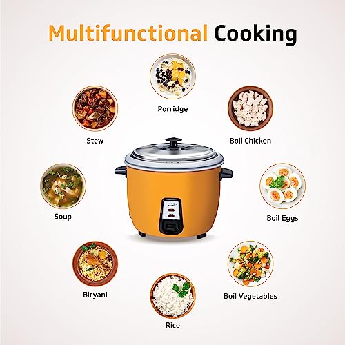 V-Guard VRCD 1.8 Litre Electric Rice Cooker, 5 Year Heating Plate & 2 Year Product Warranty, Automatic Cooking with Warm & Cook Functions, Pale Orange
