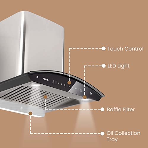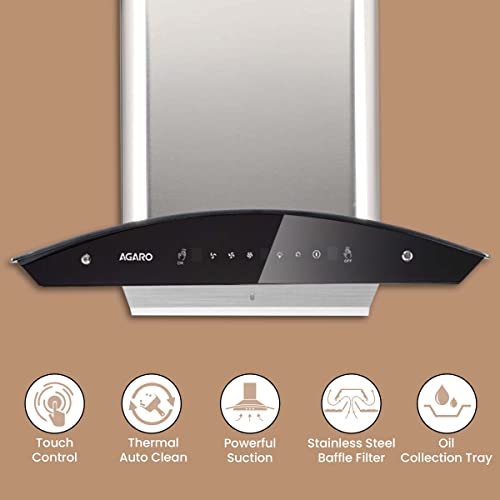 Specification: AGARO Royal Kitchen Chimney 60 cm 1350 m3/hr Auto-Clean Kitchen Hood (Filter-Less Technology, Touch and Motion Sensor Control Digital Display, Black)