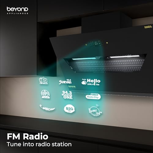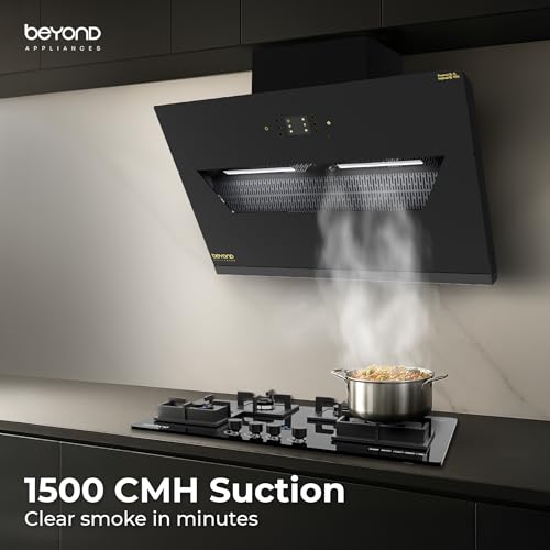 At amazon.in you can purchase Beyond Appliances Elara 90cm Auto Clean Slant Kitchen Chimney | 1500 CMH Suction | Filterless | Smart AI, Motion Sensor & Speakers | Touch Control | Radio | Whistle Counter | Black | PAN INDIA SERVICE for only ₹ 15,999