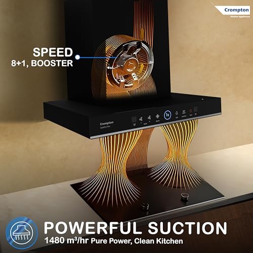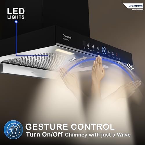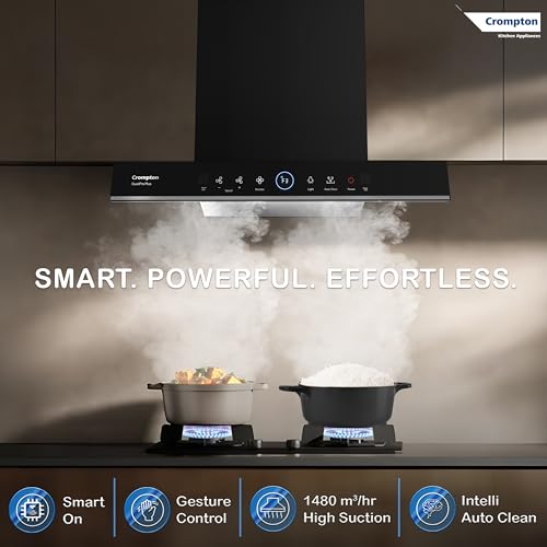 Specification: Crompton QuietPro Plus BLDC 1480m3/hr 60cm Box Chimney| Filterless Intelligent Autoclean| Smart On| Built In Oil Collector| Touch+ Motion Sensor…