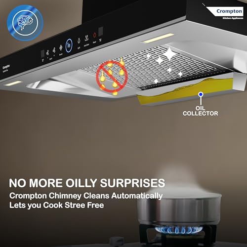 Crompton QuietPro Plus BLDC 1480m3/hr 60cm Box Chimney| Filterless Intelligent Autoclean| Smart On| Built In Oil Collector| Touch+ Motion Sensor…,
