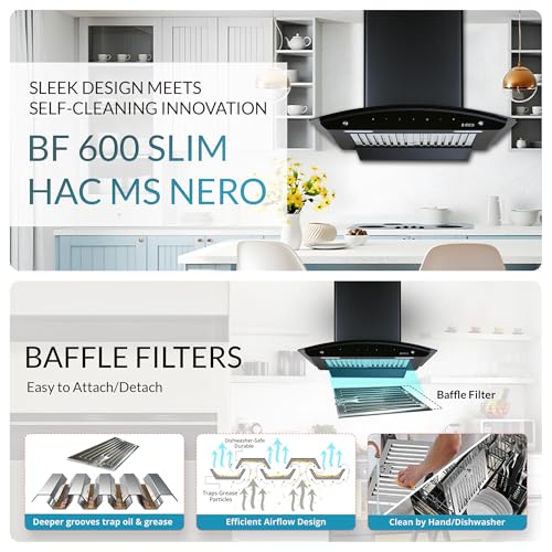 Specification: Elica 60cm 1200 m3/hr Baffle Filters Autoclean Kitchen Chimney with 10 Years Motor & 5 Years Comprehensive Warranty | BF 600 SLIM HAC MS NERO |…