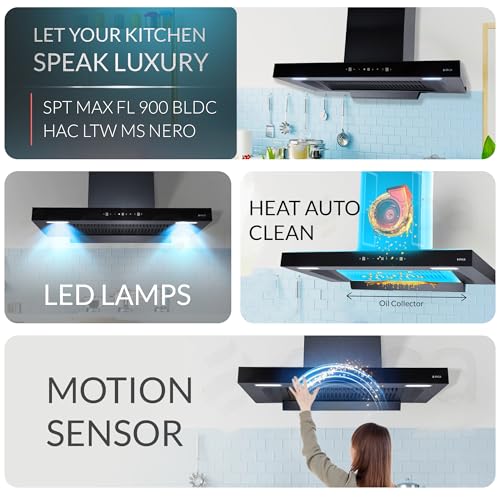 At amazon.in you can purchase Elica 90cm 1500 m3/hr BLDC Filterless Autoclean Kitchen Chimney with FULL GRILL | 15 Years Motor & 5 Years Comprehensive Warranty | SPT MAX FL 900 BLDC HAC LTW MS NERO | Black | Touch + Motion Sensor for only ₹ 19,490