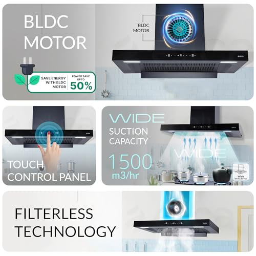 Filter Type: Filterless | Auto cleaning with Oil collection tray for easy clean | Suction Power: 1500 m3/hr