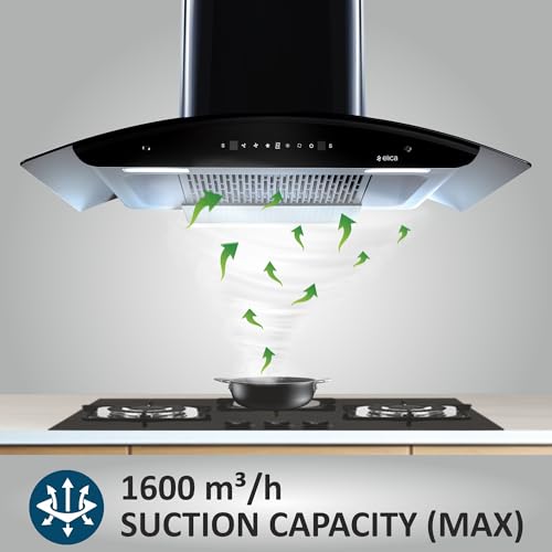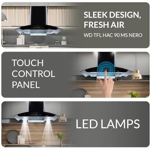 Specification: Elica 90cm 1600 m3/hr Filterless Autoclean Kitchen Chimney with 15 Years Warranty | WD TFL HAC 90 MS NERO | Black | Touch + Motion Sensor Control |…