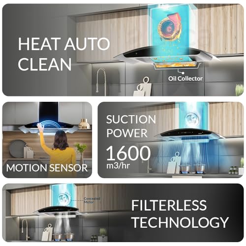 Filter Type: Filterless | Auto cleaning with Oil collection tray for easy clean | Suction Power: 1600 m3/hr