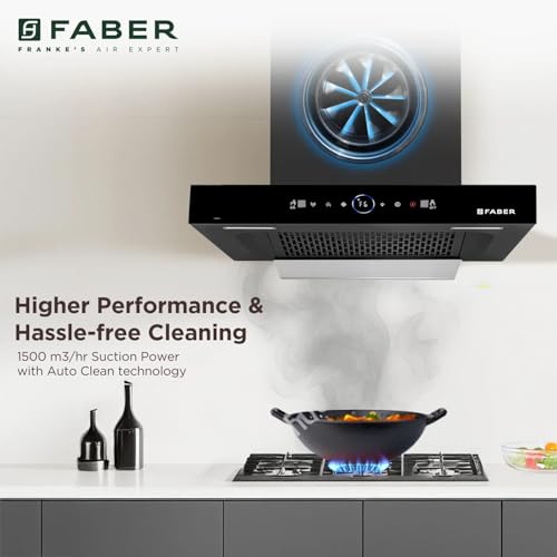 Set Alert for Product: Faber 60 cm 1500 m³/hr Autoclean Kitchen Chimney (HOOD DAZZLE BLDC FL HC BK 60, Filterless technology, Touch & Gesture with Remote control, Black) - Rs. 26,734