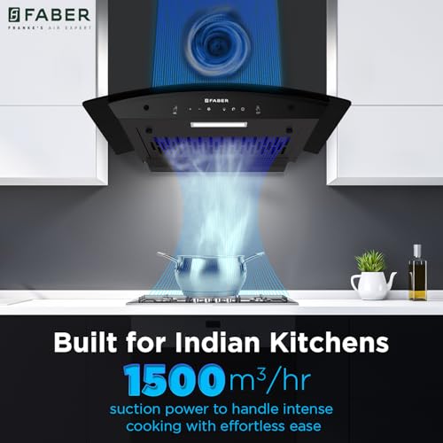 Type: Curved glass, Wall mounted, BLDC Motor | Black finish with 1500m3/hr suction capacity