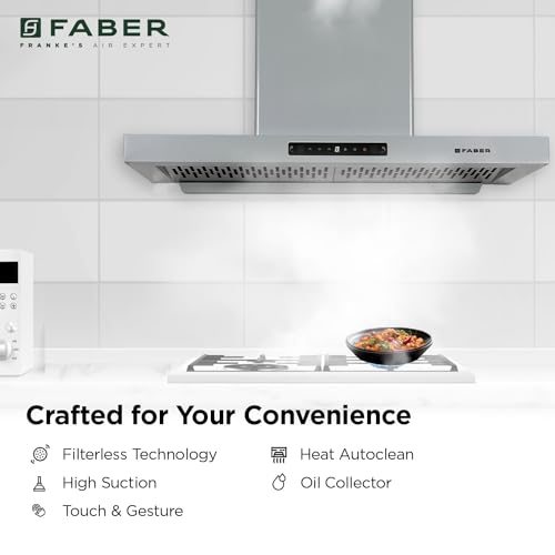 Faber 90cm 1150 m³/hr Autoclean T-Shape Kitchen Chimney | Matt Grey Finish | Filterless | Touch & Gesture Control | 8Yr Warranty on Motor 2Yr…