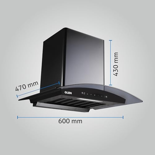 Specification: Glen Kitchen Chimney for home Filterless Thermal Auto clean | Curved Glass Chimney 60 cm 1200 m³/hr | (Hood Senza 60,Touch & Gesture Control Black)