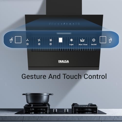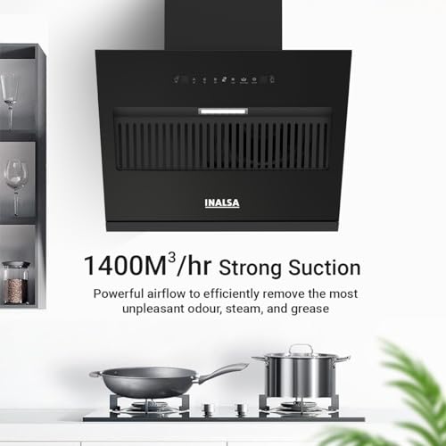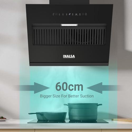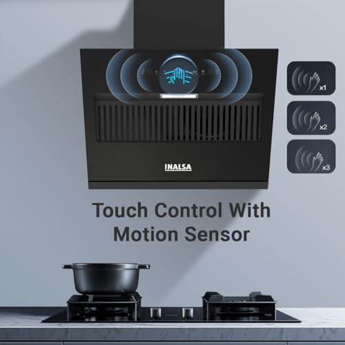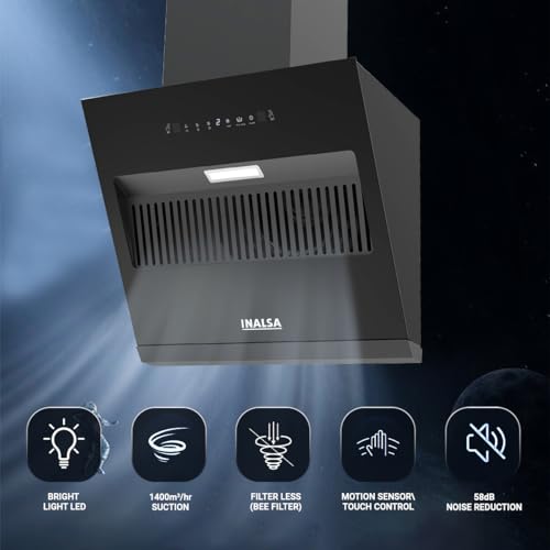 Specification: INALSA 60 Cm 1400 m3/hr Slant Black Powder Coated, filterless Thermal Auto Clean Chimney,7 Yr Warranty On Motor|Touch Control|Motion Sensor(Cosmo…