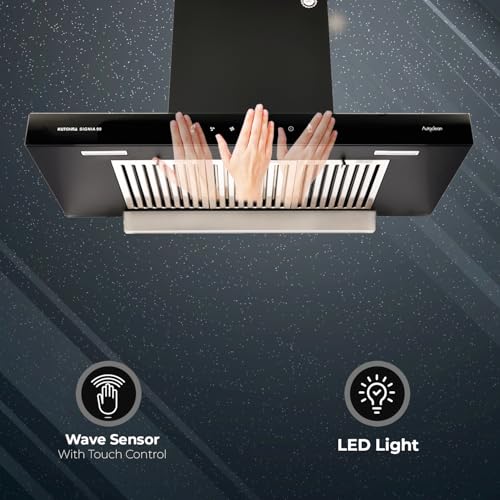 Kutchina kitchen chimney for home features touch control with advanced wave sensor gesture controls. Simply wave your hand to adjust settings, providing effortless operation and enhancing convenience in your kitchen.