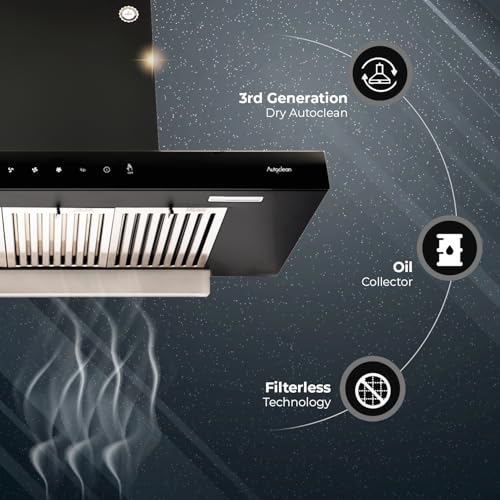 Specification: Kutchina Signia 90 Autoclean Chimney for Kitchen with Baffle Filter | 3rd Gen Dry Auto Clean | 1250 m³/hr Suction | Touch Control + Wave Sensor |…