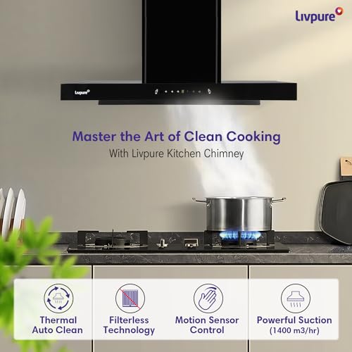 Specification: Livpure Fenix 75 Cm 1400 m3/hr T-Shape || Filterless Auto Clean Kitchen Chimney with Oil collector || 10 Year Warranty On Motor (2 Year…