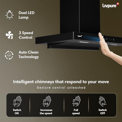 At amazon.in you can purchase Livpure Fenix 75 Cm 1400 m3/hr T-Shape || Filterless Auto Clean Kitchen Chimney with Oil collector || 10 Year Warranty On Motor (2 Year Comprehensive), (Touch And Gesture Control, Black) for only ₹ 9,599