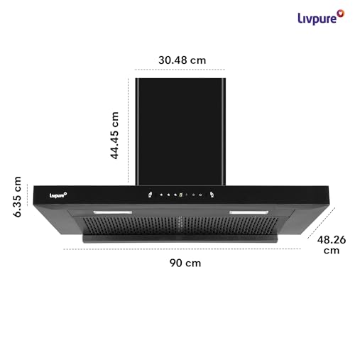 Specification: Livpure Fenix 90 Cm 1400 m3/hr T-Shape || Filterless Auto Clean Kitchen Chimney with Oil collector || 10 Year Warranty On Motor (2 Year…