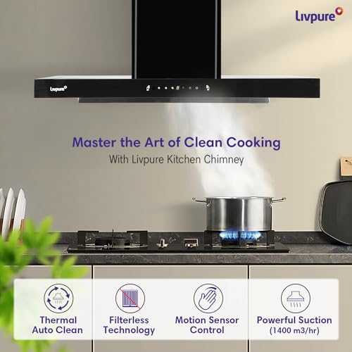 At amazon.in you can purchase Livpure Fenix 90 Cm 1400 m3/hr T-Shape || Filterless Auto Clean Kitchen Chimney with Oil collector || 10 Year Warranty On Motor (2 Year Comprehensive) by Livpure, (Touch And Gesture Control, Black) for only ₹ 10,299