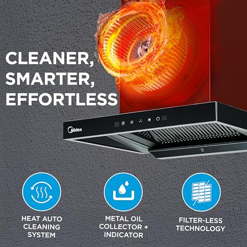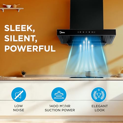 Specification: Midea 60 cm 1400 m3/hr Filter-less, Autoclean, Motion Sensor, T Shape kitchen Chimney with 2 Yrs Product and 10 Yrs Motor Warranty, Free…
