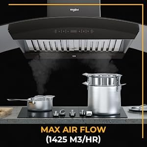 Specification: Whirlpool 90 cm 1425 m3/hr Auto Clean Chimney with BLDC Motor (CG 901 HAC BLDC HOOD, 2 Baffle Filters, Touch Control, Black)